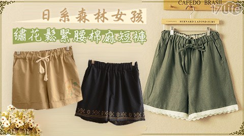 商品訊息簡述: 平均每件最低只要279元起(含運)即可購得日系森林女孩繡花鬆緊腰棉麻短褲1件/2件/4件,多款多色任選?